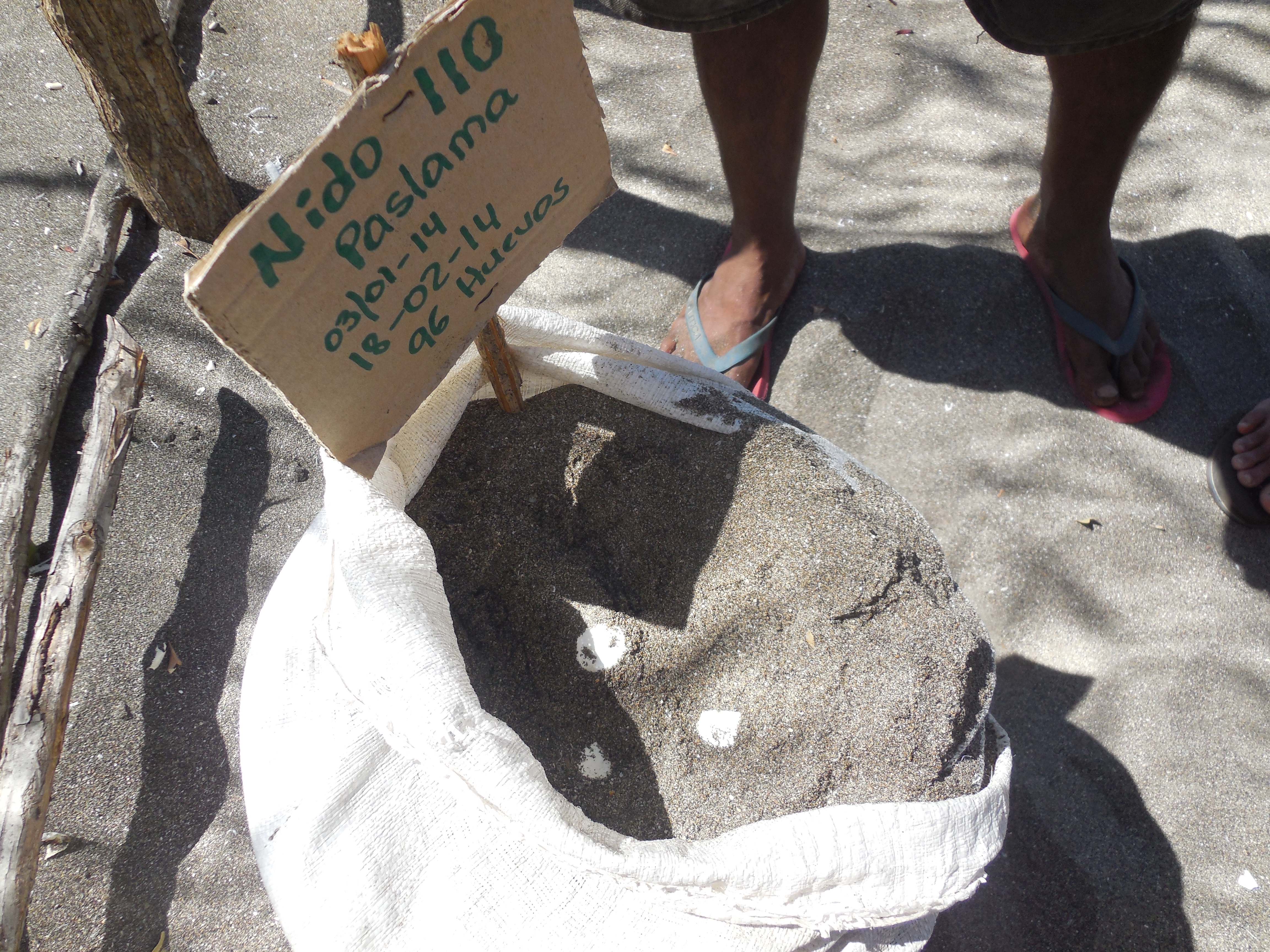 After about half an hour we got off and followed the driver on a path and whilst we were walking you could hear the wild ocean getting closer. On the way we licked salt off some leaves,saw another iguana (we saw lots of them in Mexico so we are a bit iguaned out.),lots of bees of some sort and at the end of the path we were right on the edge of the beach and there was a turtle sanctuary placed there. In big sacks full of sand were turtle eggs placed in them . This is what Nido turtle eggs look like.