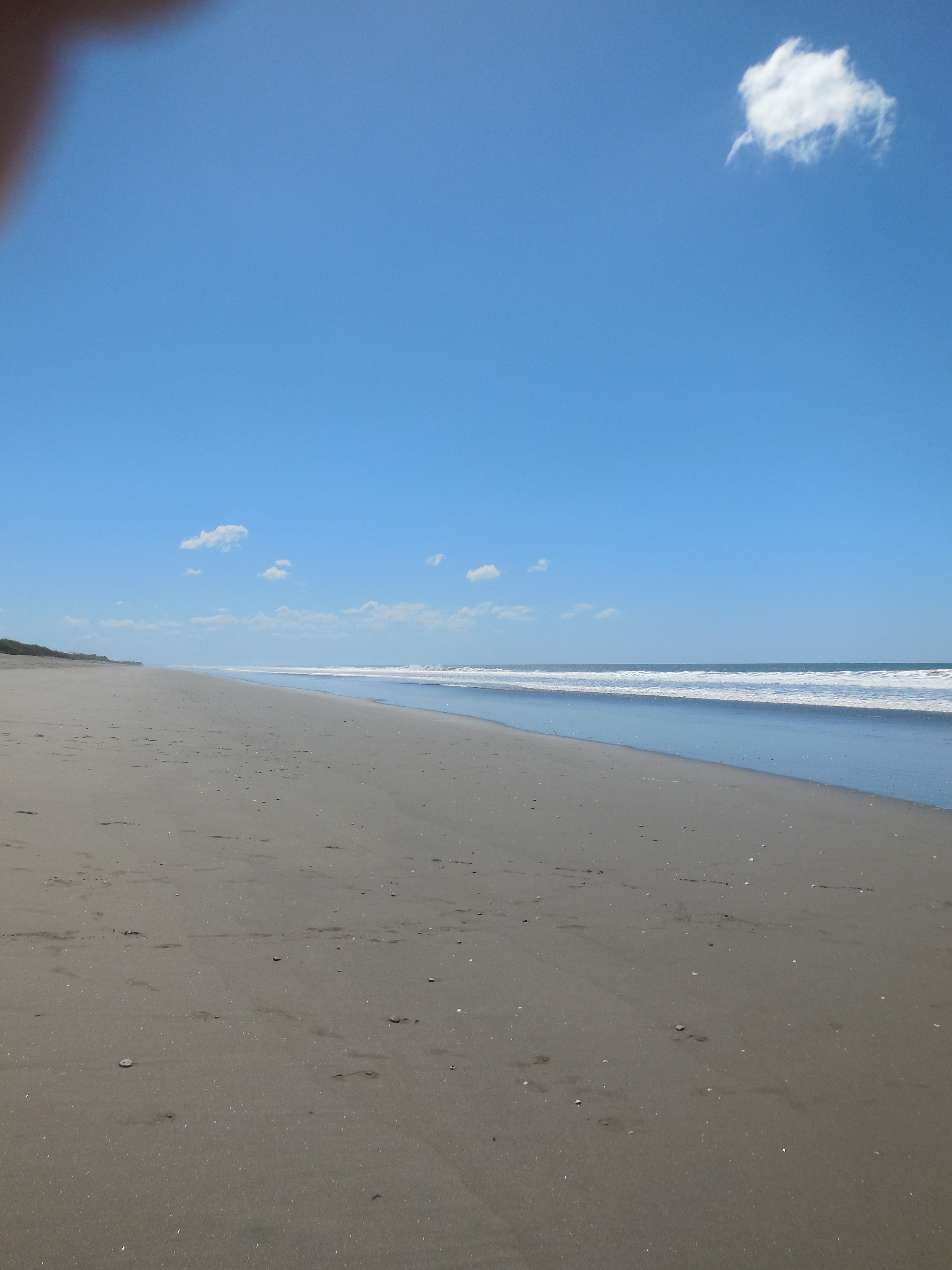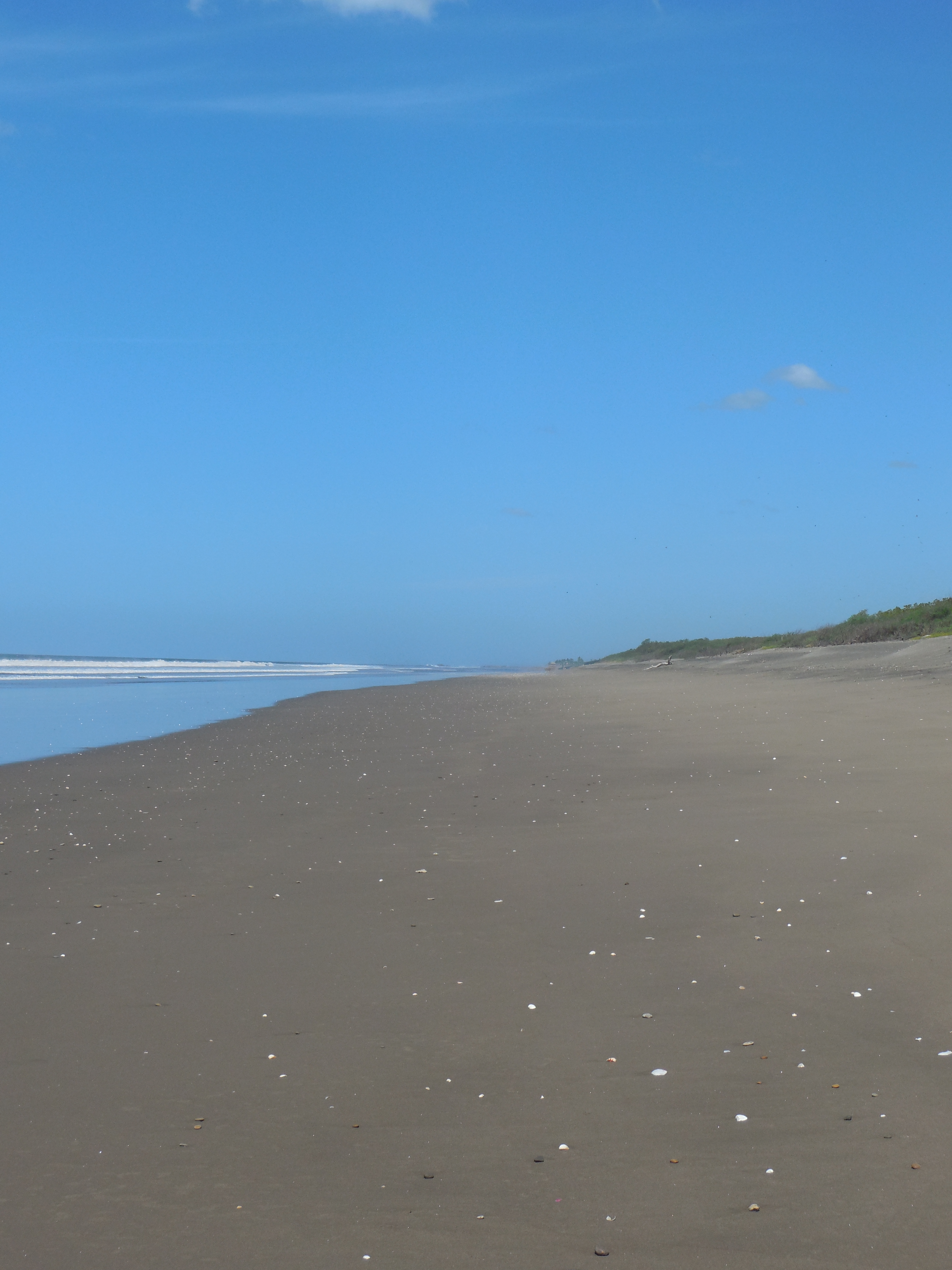 We were on one of the most wonderful,amazing,magical beaches in all the places I’ve been. The sand was white with some volcanic , sand. There were no restaurants or shacks on it and you could see for miles and miles each way with just the plain deserted wide beach. The sea was still rough but it was really beautiful. I could just imagine that this would be the perfect spot for any turtle to hatch.