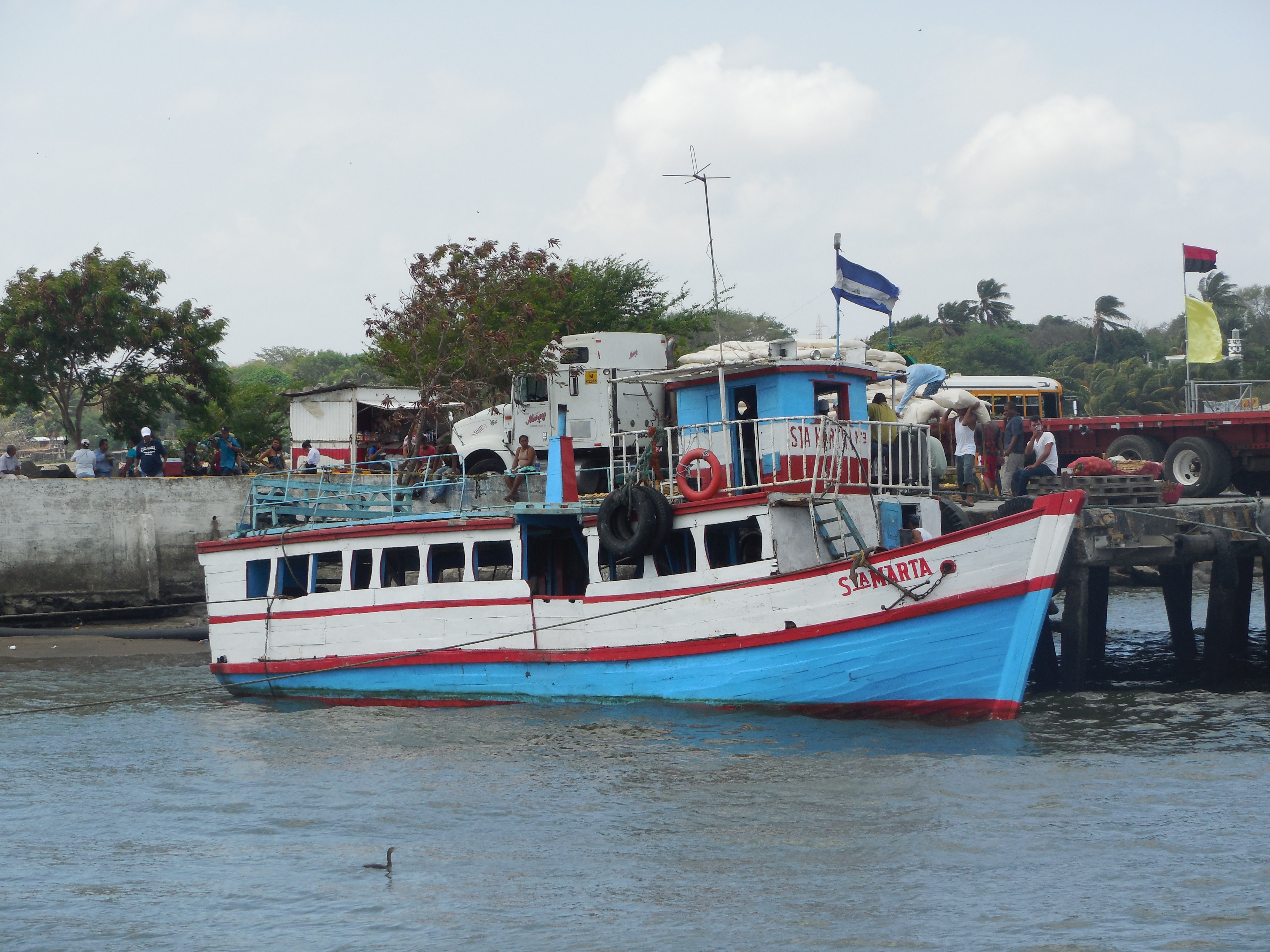We left the town of Granada and took a taxi to different Tica bus stations to book a ticket to Honduras but they had no internet so we took a chance that we could do it when we got back from Ometepe. We went to the dock of San Jorge and took an old, old,wooden cargo vessel with 2 floors,the top one was outdoors and the bottom one was indoors.