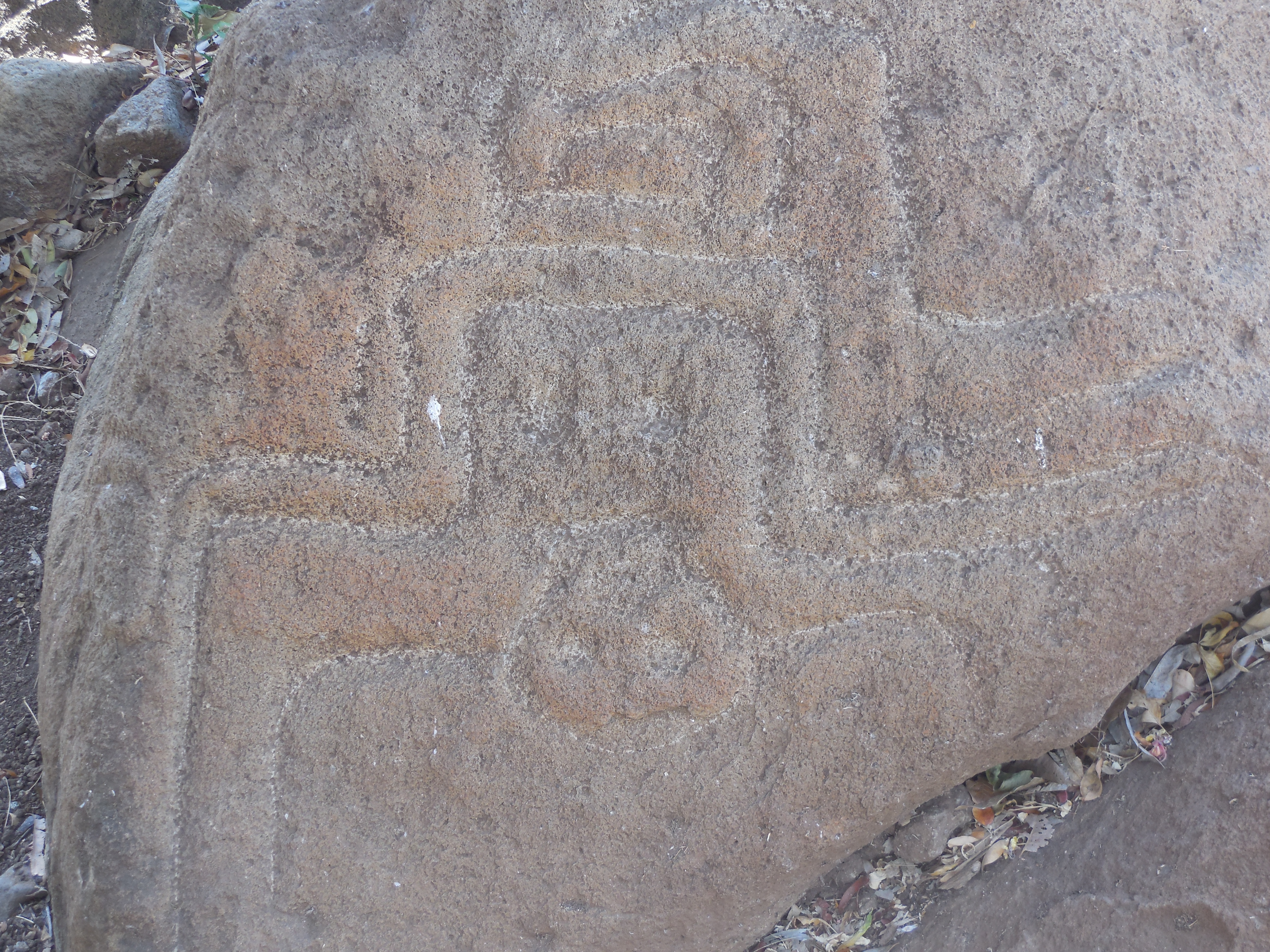 One day we took a 4 wheel drive taxi and drove to some petroglyphs outside of Santa Cruz. Petroglyphs are carvings on rocks, these were more than a thousand years old. Here are some pictures of them-.