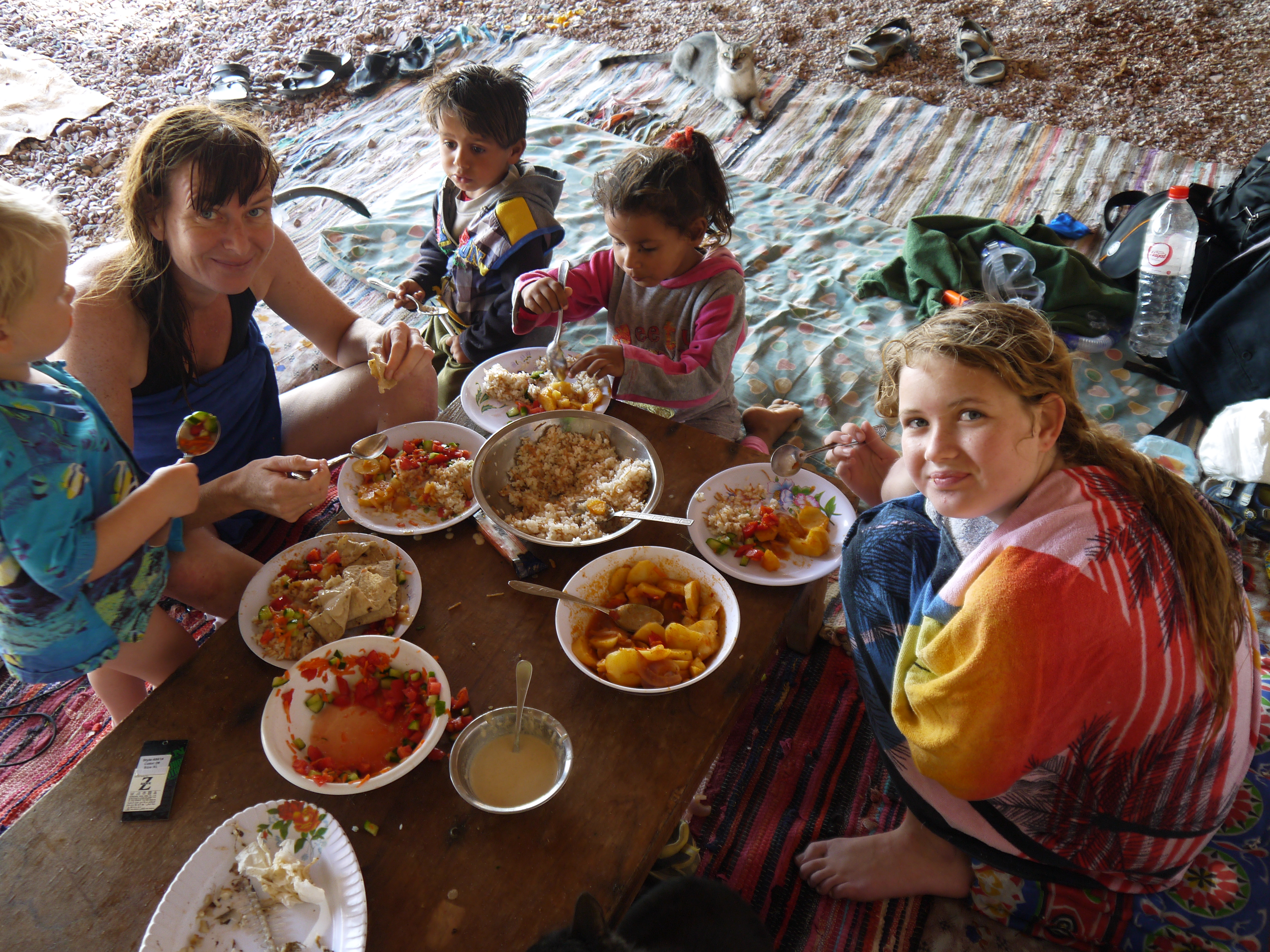 We said farewell to our camels and went to sit in a shack looking out to the sea. It had a coffee table and cushions around for chilling on. There were a few Bedouin families living there.