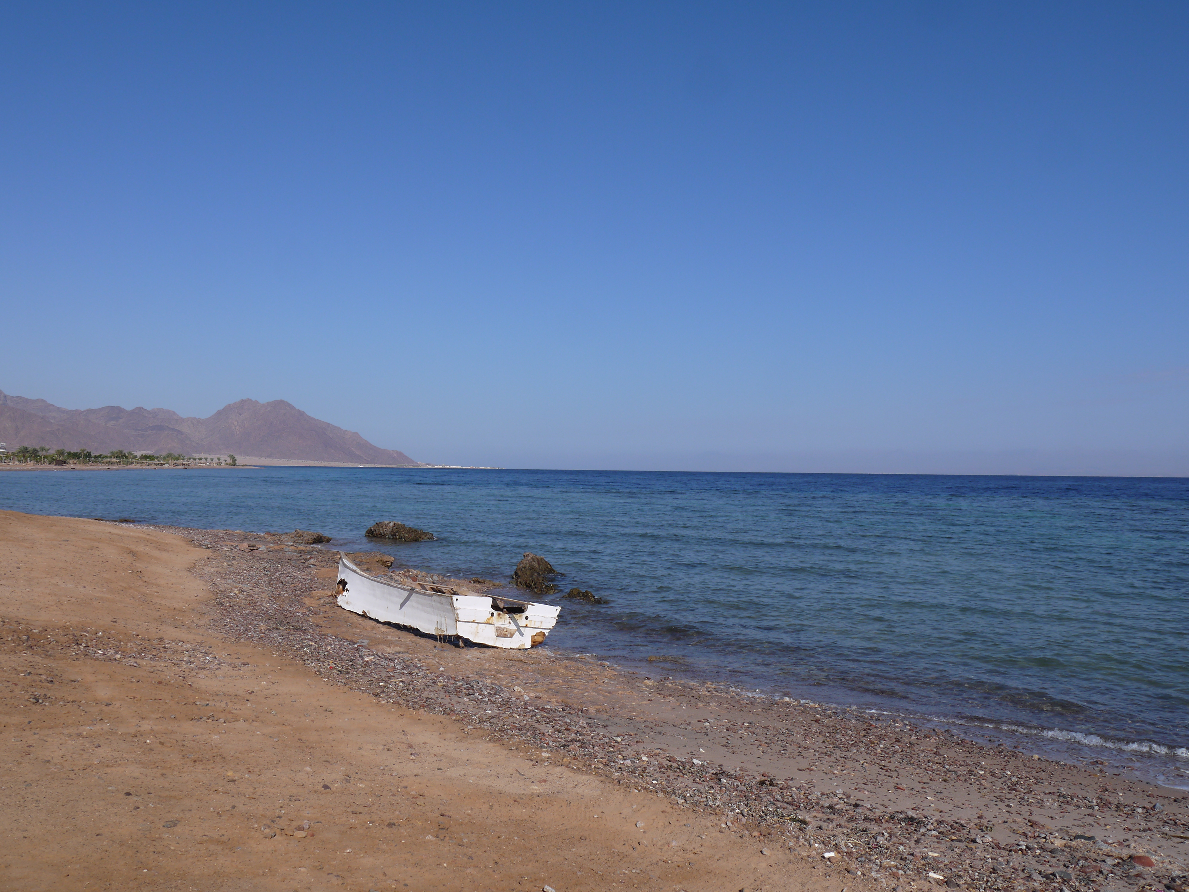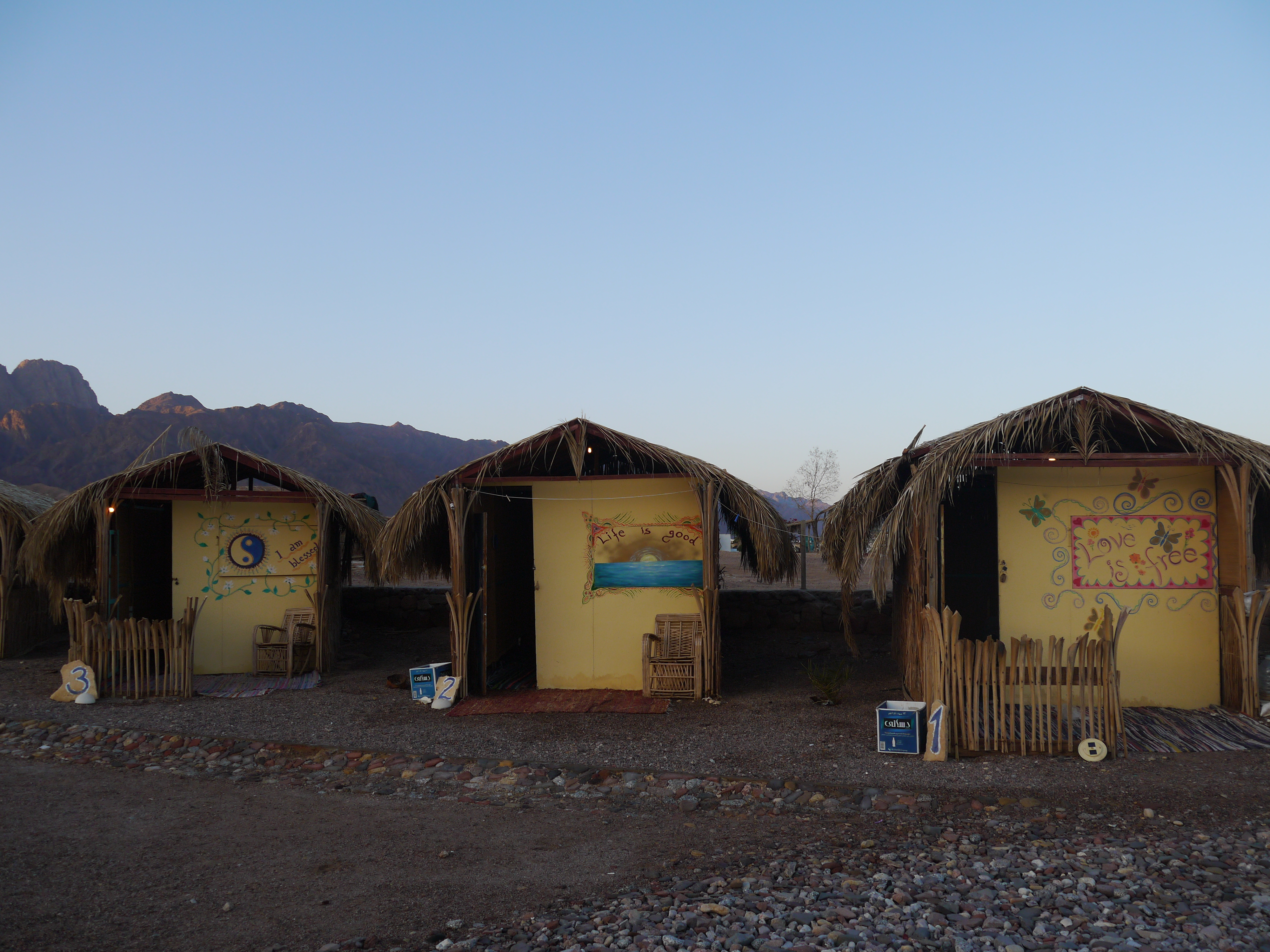 After a 1 month stay in Dahab we left for Nuweiba which was further up the Sinai coast. We didn’t stay in the town of Nuweiba but just outside it in a small Bedouin beach camp with a few simple huts. We stayed there for 5 nights. We got the first 2 front huts of the camp so we could see the sea from the bedroom.