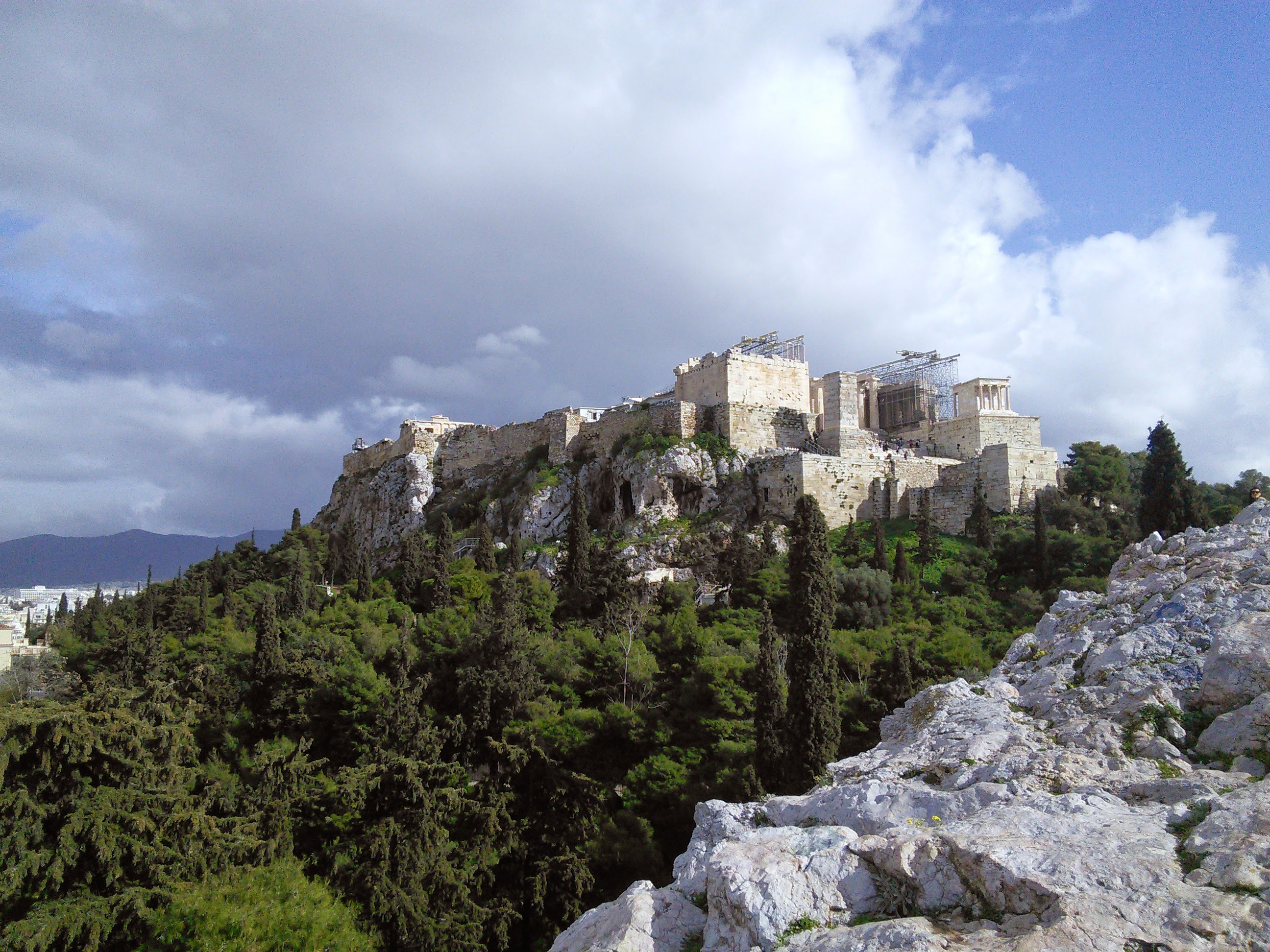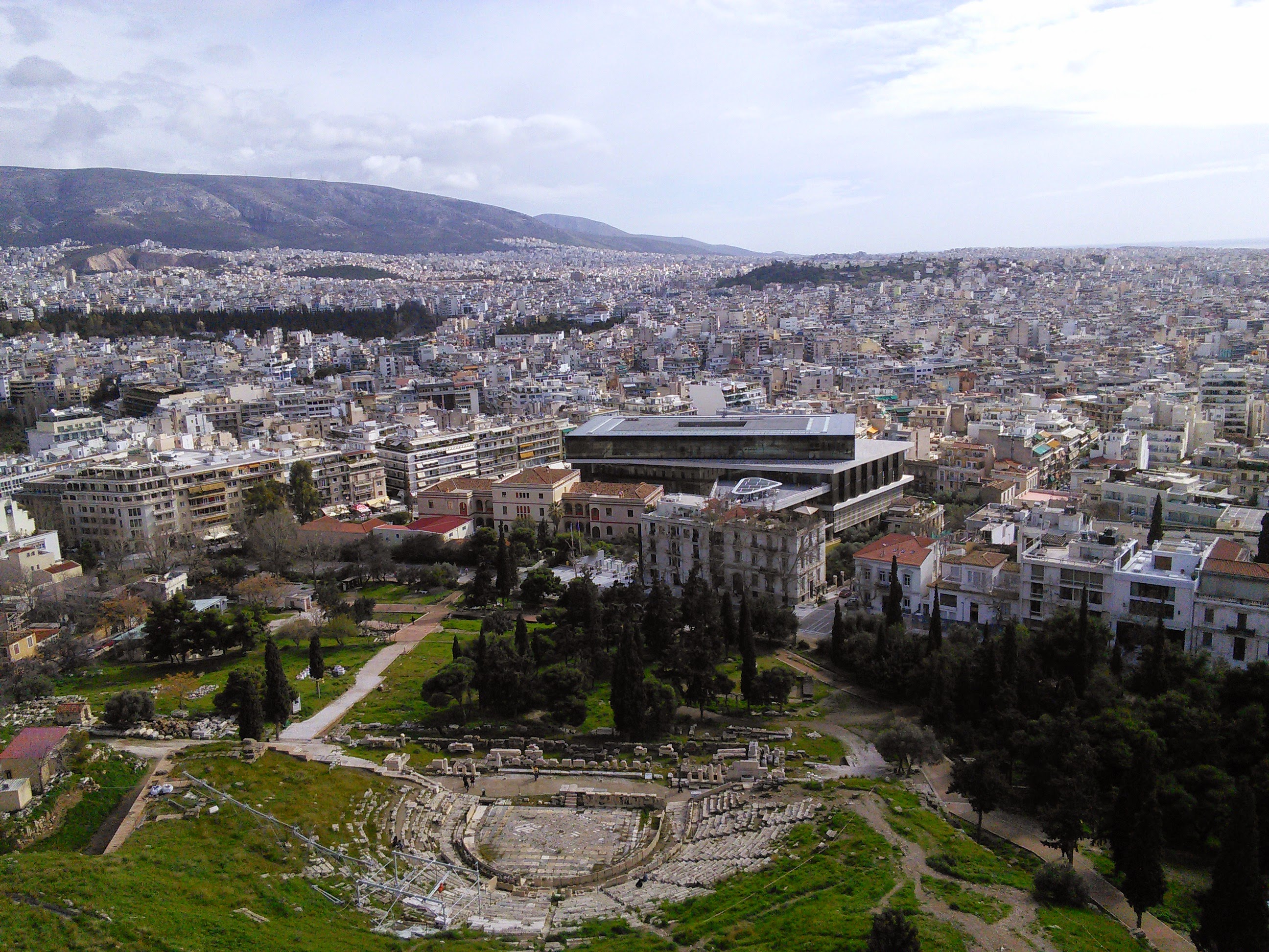You have a full 360 degree view over the city Athens. You could see the sea towards the right, the temple of Zeus and all the other sites around Athens.