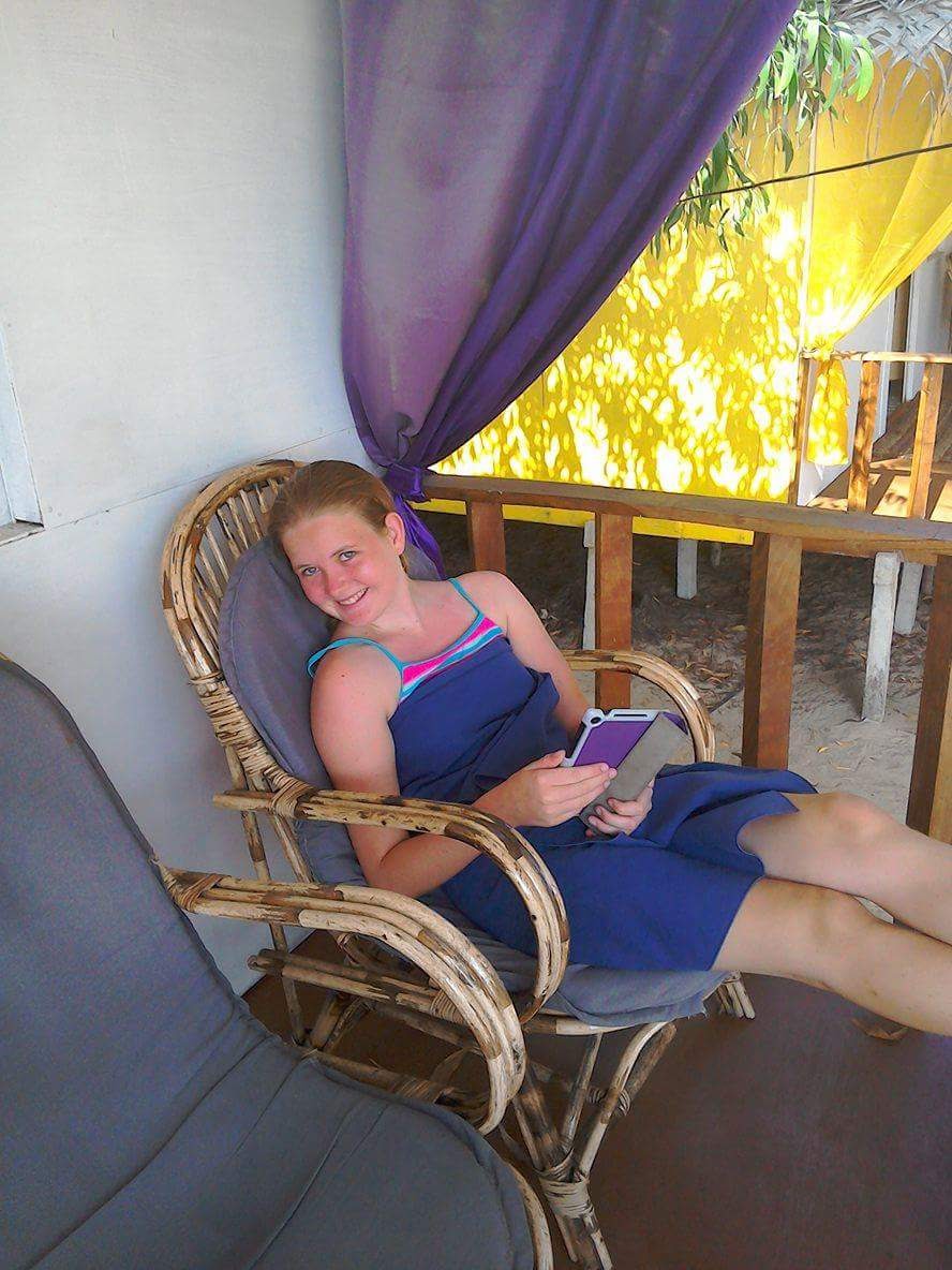 We got two huts of which both had a comfy double sized bed in each and not much other than a couple of side tables. They each had a balcony where you could spend all day if you wished reading in the shade. Even though not on the front we catch glimpses of the sea every day. Though we didn’t have hot water the shower was still sufficient. There was a restaurant of which had delicious food for both breakfast and dinner. The beach was less than 10 metres away and the sea not much further. At the end of each day we were rewarded with a perfect phenomenal sun set. We stayed here for 16 nights.