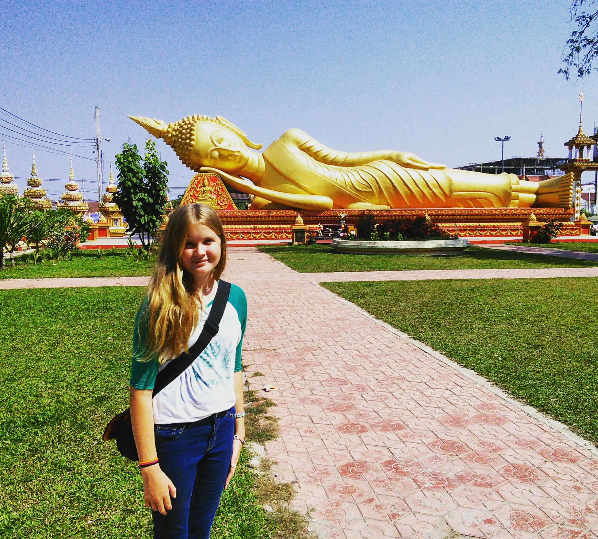 Pha That Luang – Buddhist Stupa in the centre of Vientiane was all in all beautifully designed. Apparently it’s the largest Stupa in Laos. I wouldn’t say it was the best stupa I’ve been to or my favourite site but I admit we have been spoilt with the different forms of architectural beauty all around the world. The sleeping Buddha here was worth the visit on its own.