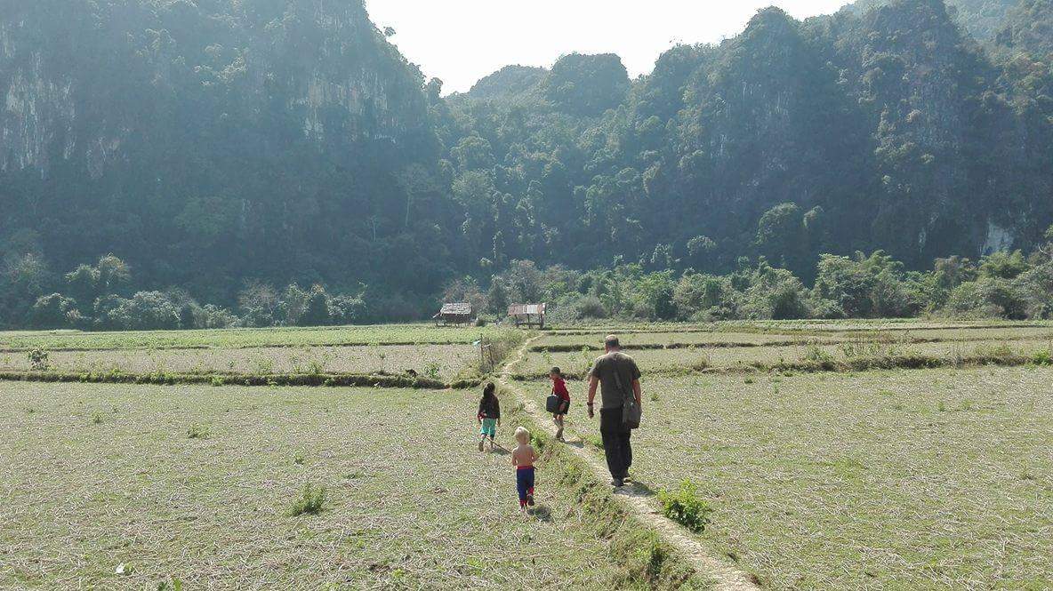 We were dropped off in town and took a tuk tuk to the other side of the clear flowing Nam Song river. The bungalows were hosted by Nouth who was really welcoming to ‘Lao Valhalla’ (found on Airbnb). The bungalows were meant for 2 people but we managed with another mattress on the floor and then all in the same bed! The gardens surrounding us and the view of the mountains could be seen all around you. Behind the bungalows was a sheer faced cliff where millions of bat’s would fly out of at around 6-7 pm every evening so we led my brother to believe Batman lived there which was great for his enjoyment. 5 nights were spent here although I could have stayed much longer.