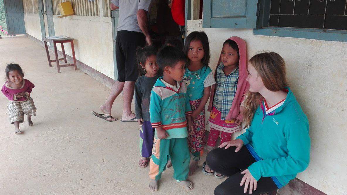 Children came to scrutinise us -especially Jed-. Pigs lounged around and families came to their doorways. Some people took pictures but we just kept ours limited to a few. We walked up to the school on top of the hill which looked like all the others around Laos – long, rectangular and on one floor. Teachers taught in the classrooms and the younger ones who didn’t study were playing and looking at us in the outside area.