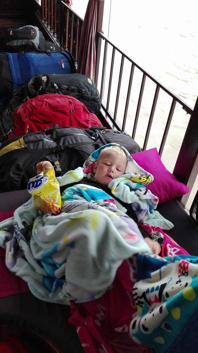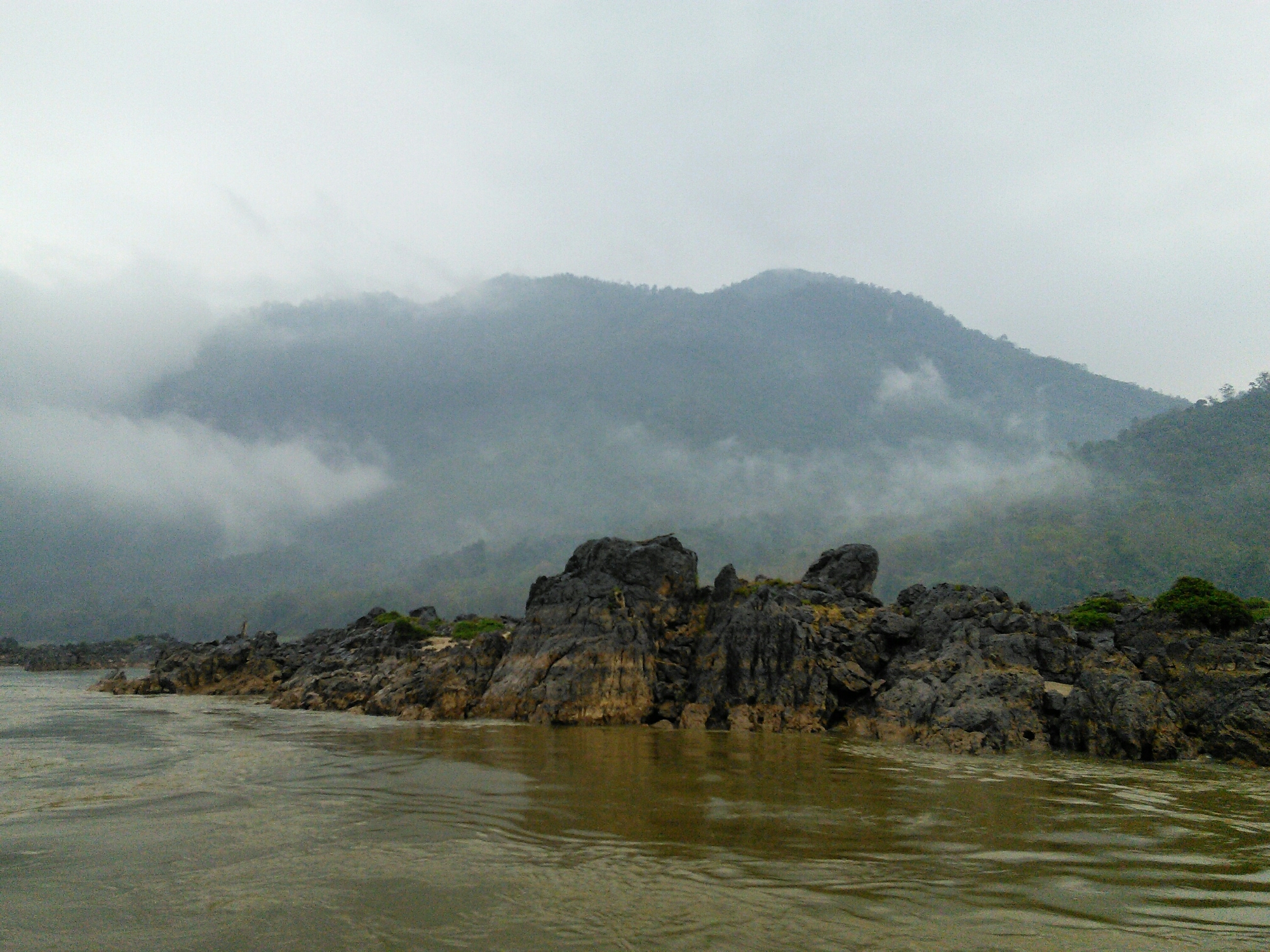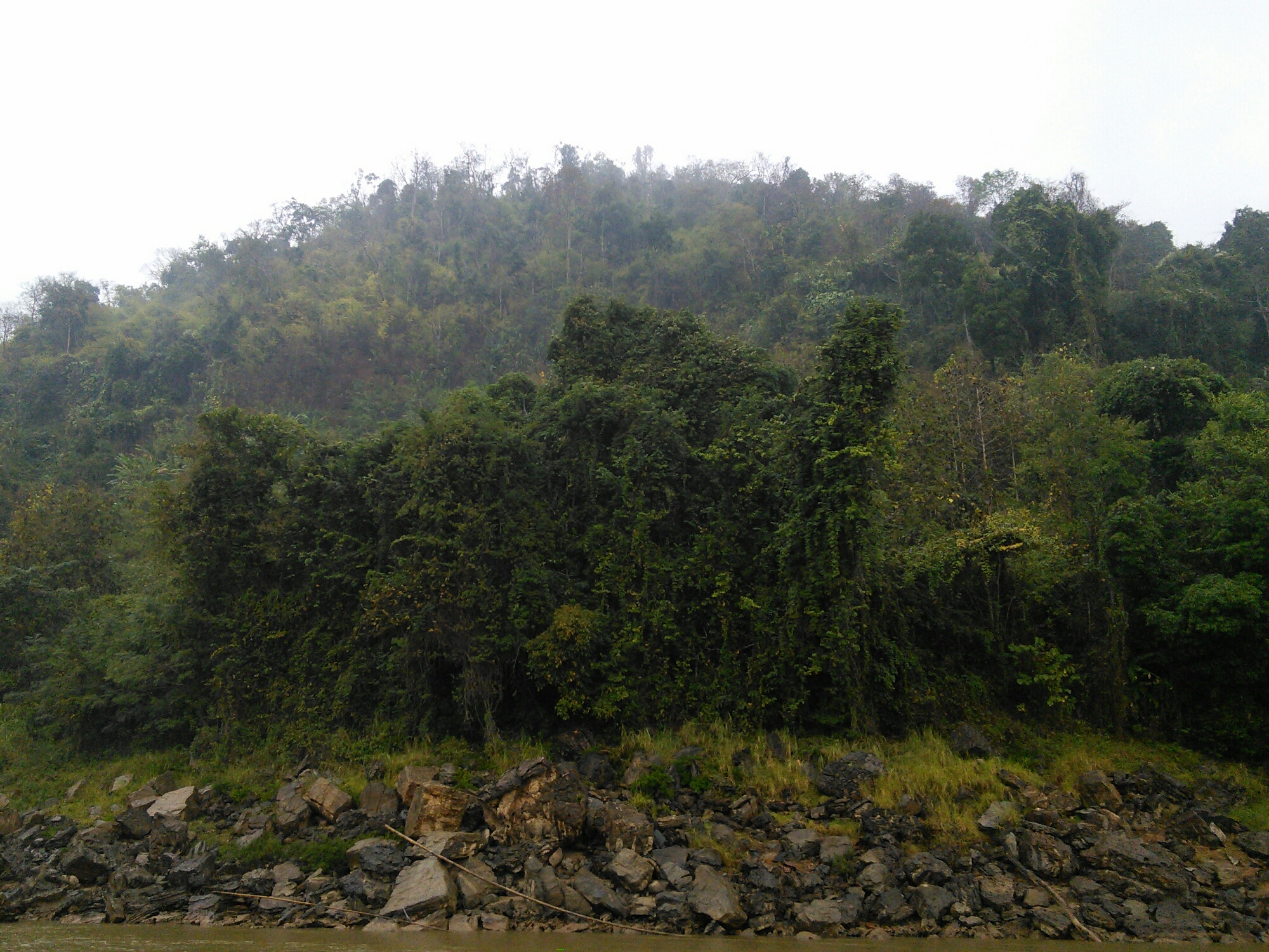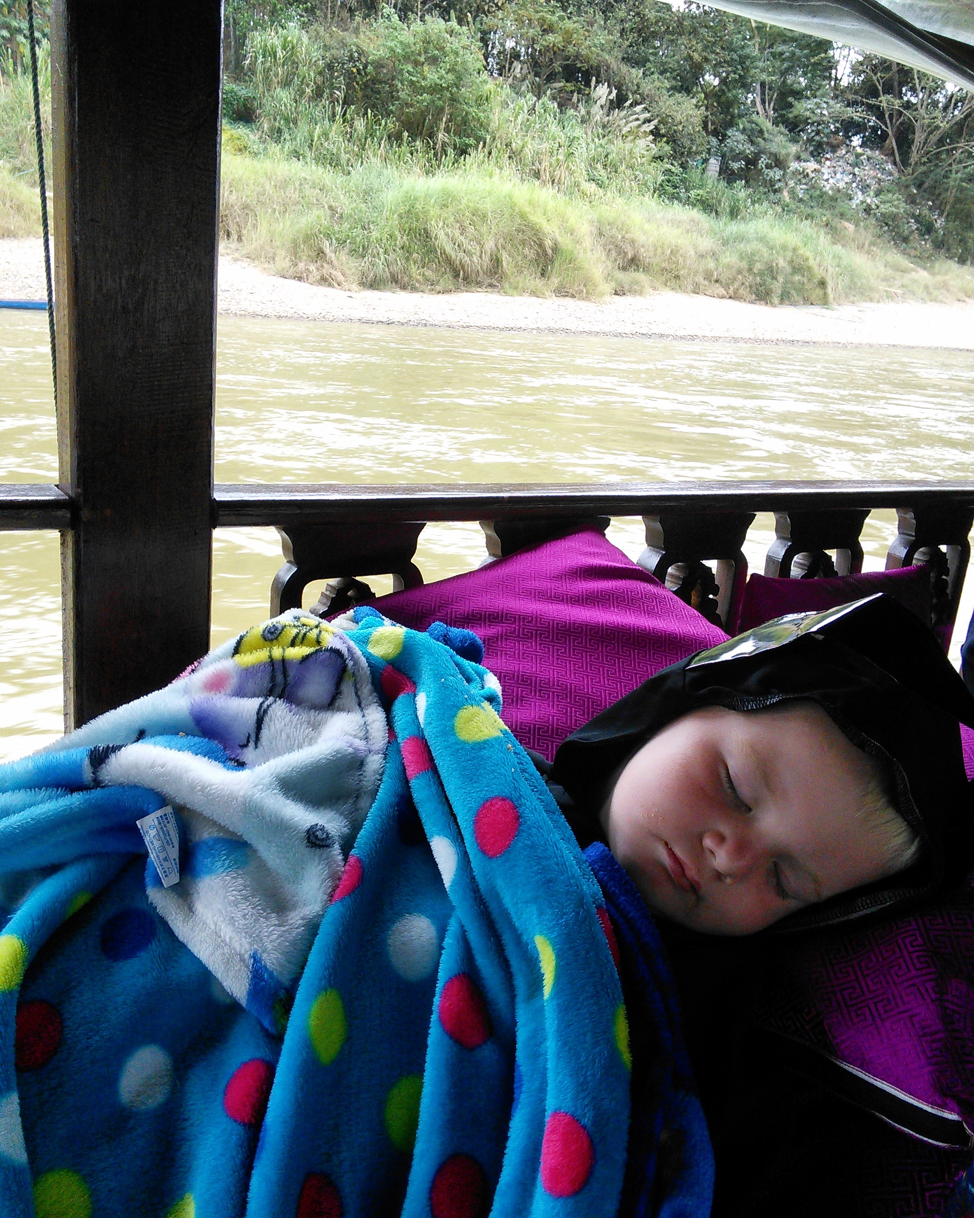 When we set off the next morning it was still dark as we made our way down to the slow-boat. We bought our own breakfast and glided along for another day. At some point the sun rose and was trying to break through the clouds but didn’t succeed.