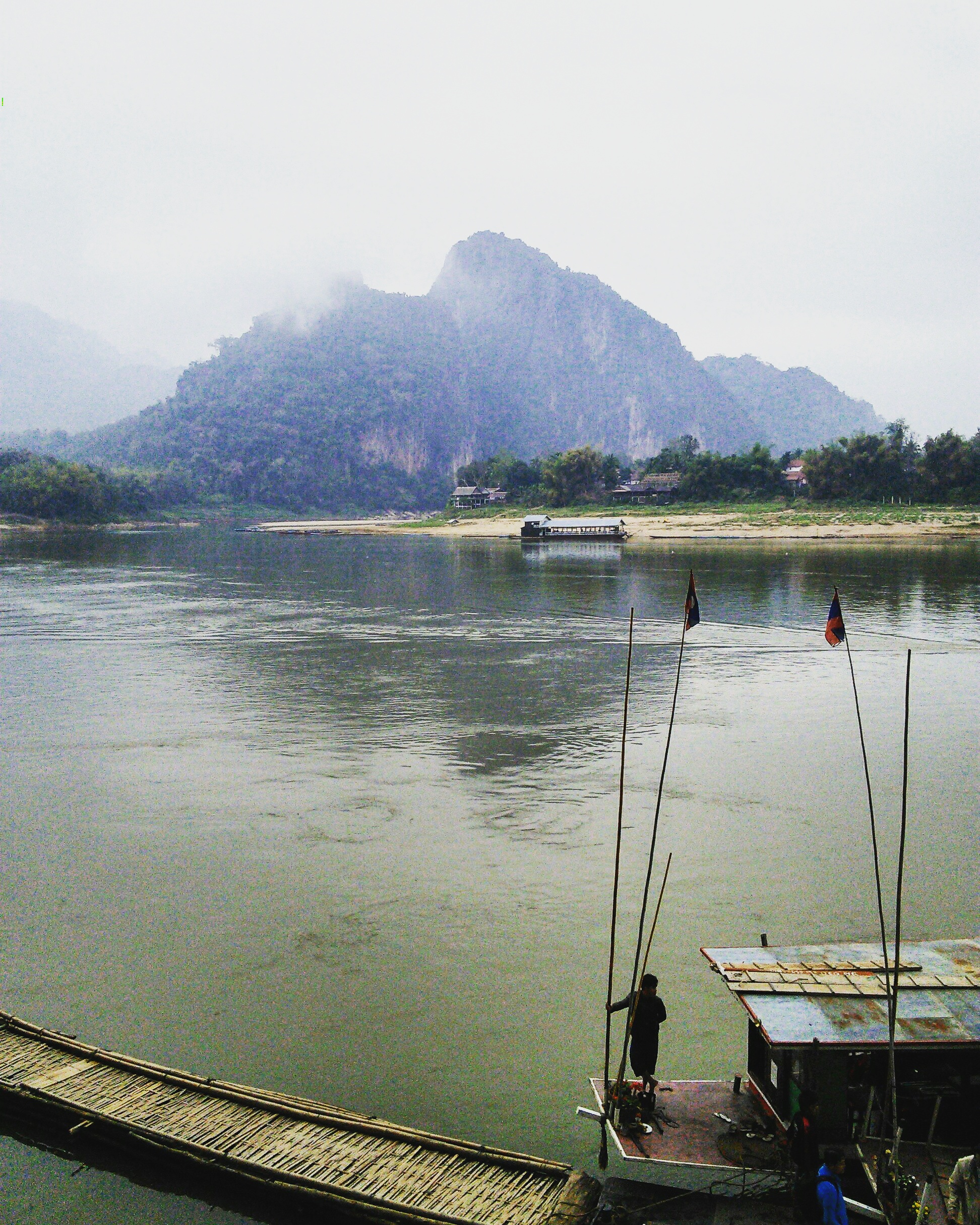 Soon we reached the border and on the left of the river was Thailand, on the right was Laos. Land flattened and the skies opened and gave us more light.