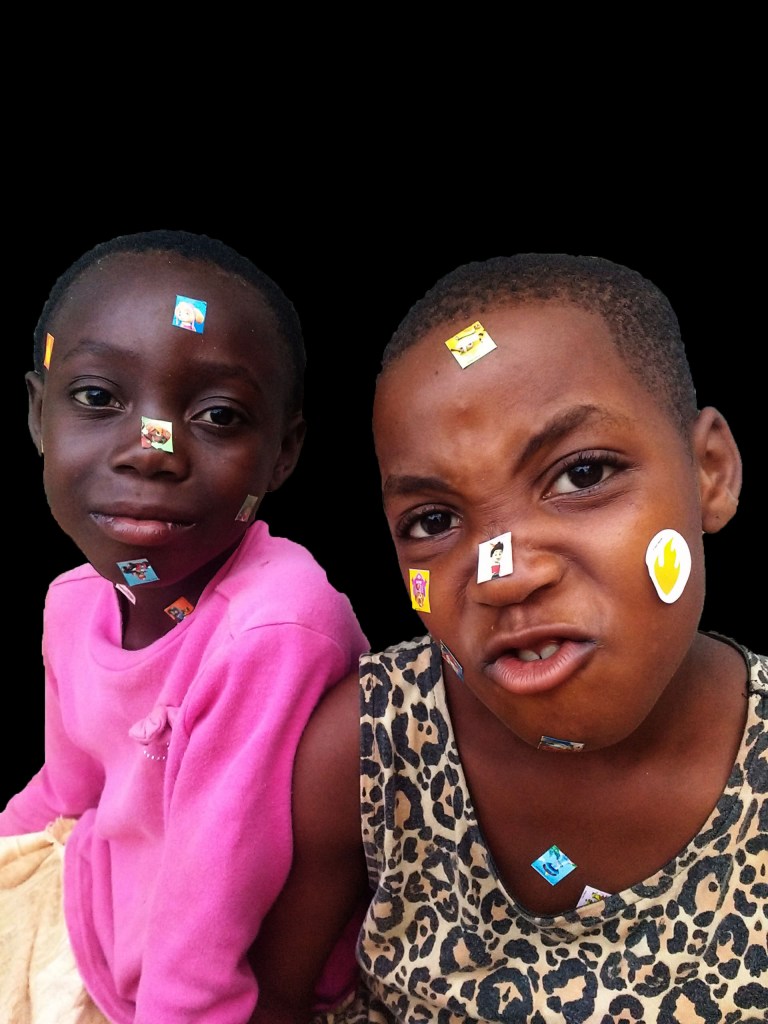 One of the days a few of the village children came to play and me and Jed set about showing them the art of sticker fun.