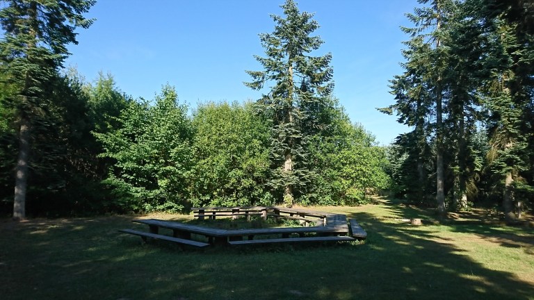 It seemed to be set up for large groups with it’s huge wooden tables, free wood, fire pits, run down zip lines in a clearing which felt like the middle of nowhere.