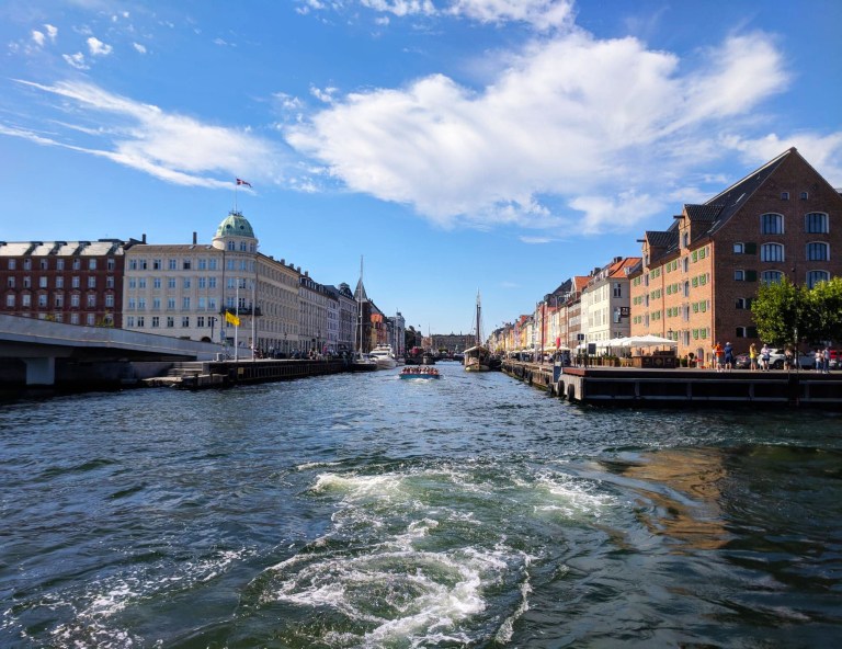 The ferry zigzagged along Copenhagen River in the dazzling midday sun amidst the different deep blues of sky and water.