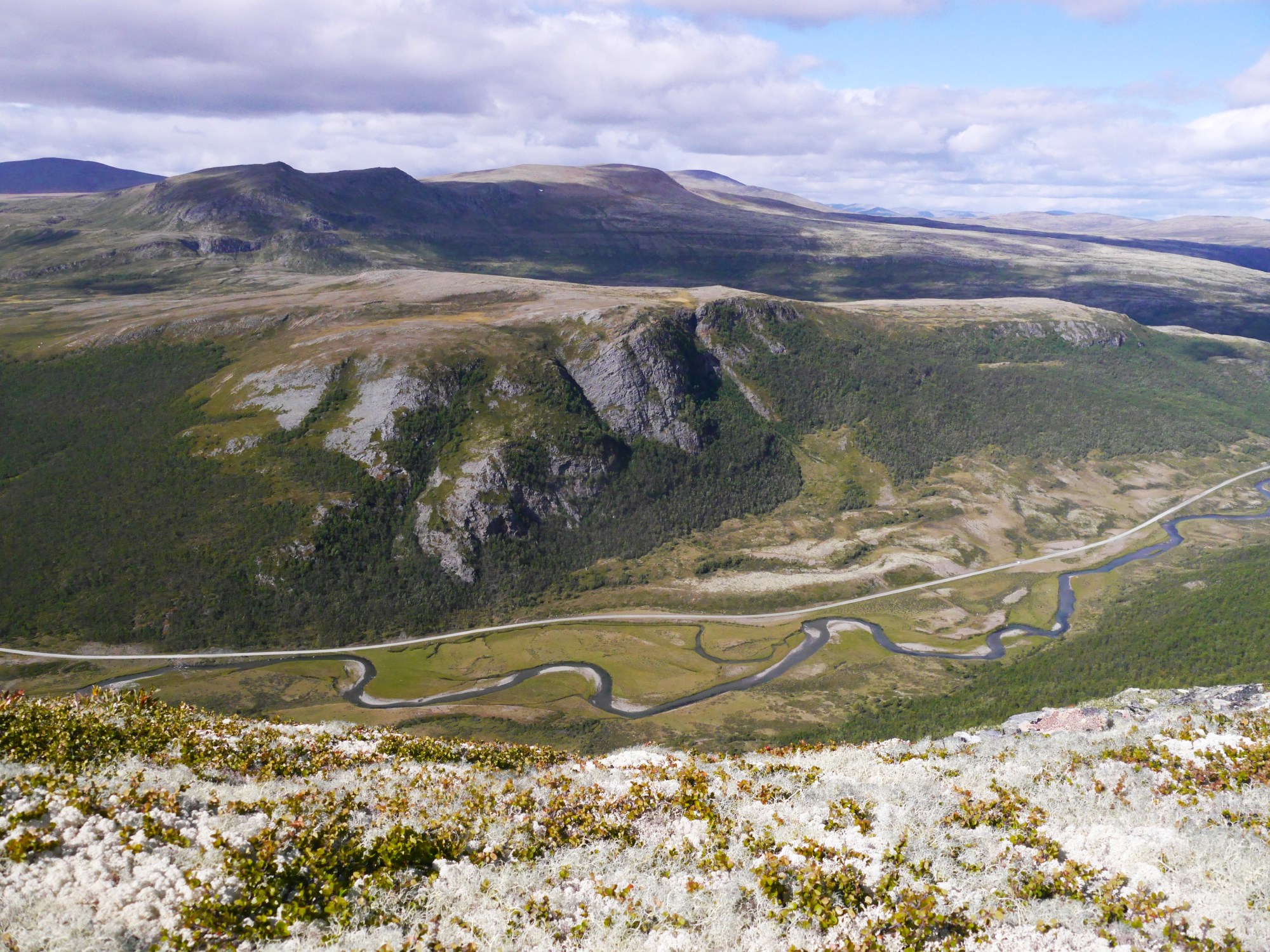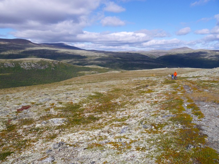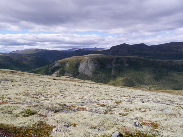 Following the path that led up the mountain we were soon surrounded by the twisting branches of an undisturbed woodland. As we continued our ascent and my brother continued his search for wolverines, the air slowly became even more crisper and the sounds of birds chirping more alive. The woodland disappeared and with it came endless mountain tops covered in glowing lichen with the odd boulder peaking from it’s hiding place.