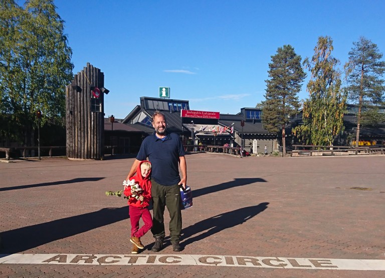 Half an hour into the flat forest landscape of Finland and we encountered a white reindeer, its’ white coat promising what was to come in the upcoming winter; we later found out they were a rare sight. It was the perfect sight considering Lapland, Rovaniemi, was our next stop. Yes, it was September and not the time to see Santa, but Jed knew no difference and there were still many tourists visiting. My brother ‘met’ father Christmas and claims he was so nervous he forgot to tell him what he would like and instead told him all about our trip so far! Receiving a present all the same(and me a job), he was very happy and we managed to see the place and step through the Arctic circle ‘line’ once more surrounded by sun rather than snow.